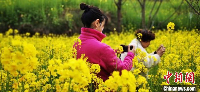 立春以来,西北小城甘肃陇南市文县境内,3万余亩油菜花次第开放,形成“漫山尽是黄金甲”的景观,像极了江南春景,引来游人漫步花丛,拍照赏花。