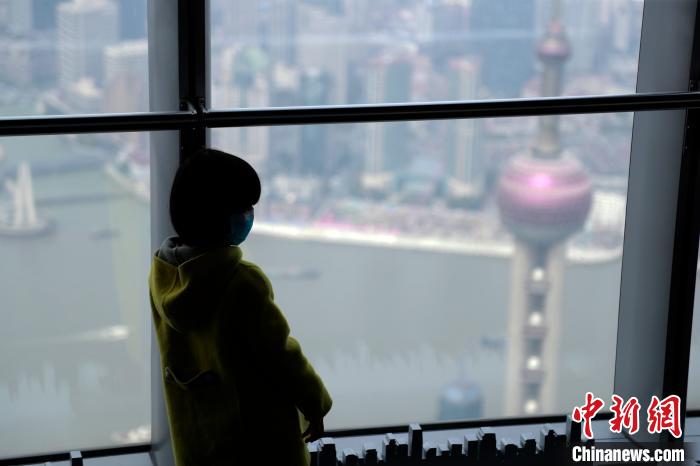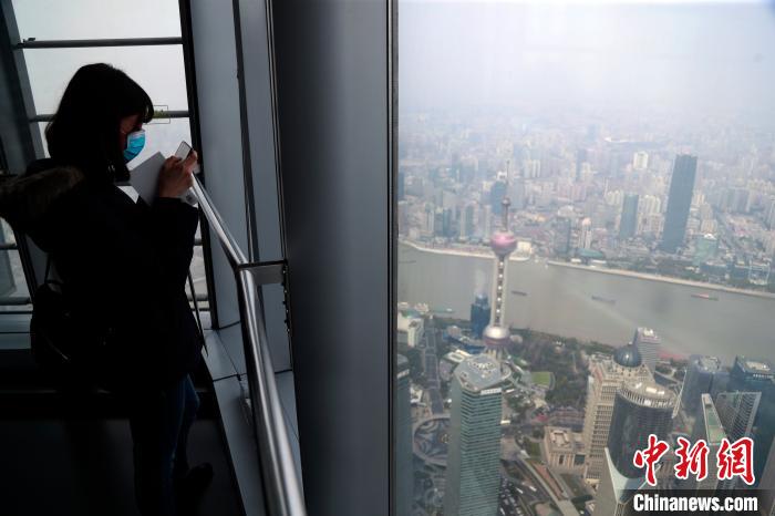 3月12日,游客在上海中心大厦118层观光厅俯瞰上海全貌。当日,包括上海之巅观光厅、金茂大厦88层观光厅、枫泾古镇在内,上海恢复开放的景点景区达22家。各景点以“实名制+分时预约+限流”的方式,尽可能降低景区人员密度,全力保障游客健康和安全。