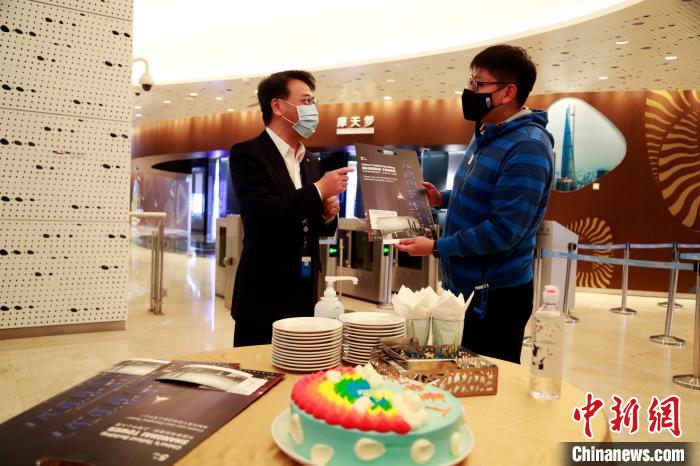 首位游客获赠上海中心纪念品。 汤彦俊 摄