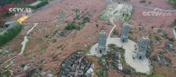 在酉阳叠石花谷,1000亩的粉黛花海朦朦胧胧,散发着浪漫的气息,上亿年的叠层石花与千亩粉黛花海成了最佳拍照背景,吸引了不少游客前来打卡留影。