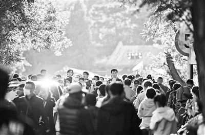 昨天,香山红叶观赏期迎来首个游览高峰日。公园购票平台显示,截至18时,全天客流量超过3万人。北京青年报记者从香山公园官方微信公众号了解到,为落实疫情防控常态化工作要求,香山公园实行限流管理,每日接待游客量不超过当日最高接待量的75%,单日最大承载量为7.575万人。香山公园预计,10月24日、25日、31日和11月1日、7日、8日均为游览高峰日,提醒游客错峰游览。