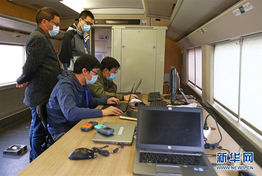 10月20日,工作人员在综合动检列车上进行测试。 当日,西(安)银(川)客运专线开始全线拉通试验,并计划于今年12月底开通运营。西银客专是国家中长期铁路网规划中“八纵八横”高铁网包(银)海通道的重要组成部分,全长618公里。 新华社记者 贾浩成 摄