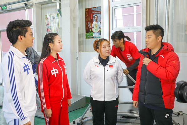 在校内的冬奥训练馆,训练器材一应俱全,其中的大蹦床格外引人注目。主持人带领观众一起观看并体验运动员的日常训练。教练员张馨月介绍说,除了日常的体能训练外,蹦床是“单板坡面障碍技巧及大跳台”必不可少的训练科目,为了培养更多的冰雪运动人才,张馨月教练在宝宝出生后不久,就奔赴训练场,至今还过着一家三口三地分居的生活。