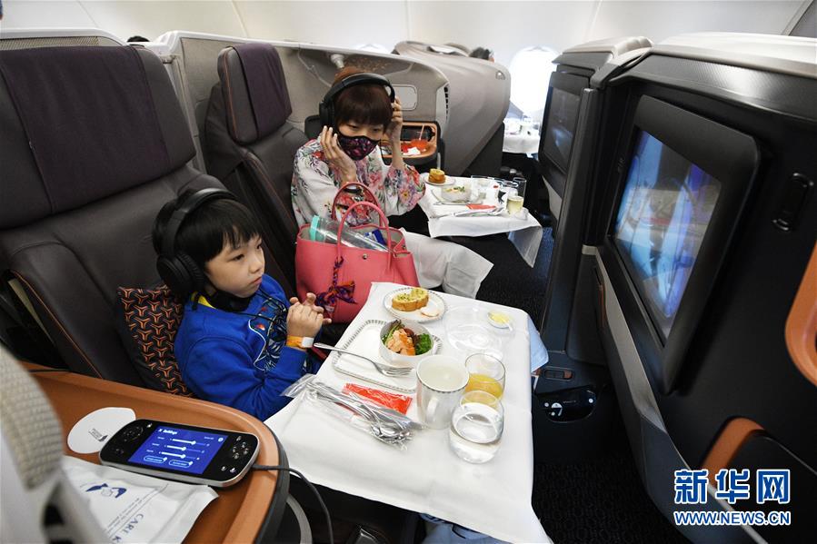 10月31日,在新加坡樟宜机场的A380客机地面餐厅,顾客享用飞机餐。 新加坡航空公司近日推出飞机餐地面用餐服务,受到不少顾客的欢迎。两架停在樟宜机场的A380客机被改为地面餐厅,在10月24日至11月1日之间的两个周末时段营业。疫情期间无法乘飞机出行的人们可以在此享用飞机餐,品尝久违的航班“味道”。 新华社发(邓智炜摄)