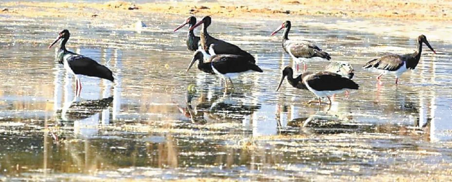北京日报讯(记者 叶晓彦 通讯员 舒媛)近日,十余只羽毛黑亮、红喙红腿的国家一级保护濒危鸟类黑鹳飞临密云水库。这是近年来密云水库发现黑鹳数量最多的一次。