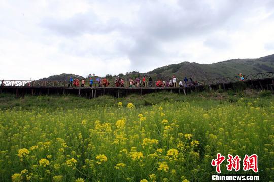 游客畅游布尔津县戈宝红麻花海景区。 王小军 摄