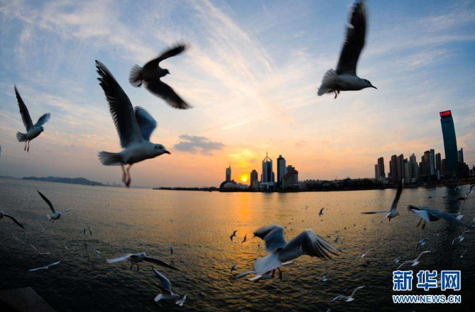 登上甲板,记者看到此刻奥帆基地内有各种帆船,在渐渐到来的夜幕映衬下,显现出“渔船归港”的安详。而向市政府方向望去,最先映入眼帘的是青岛东部新城区标志性的雕塑——五月的风,在灯光的映照下,这座雕塑就像一团火焰一样,也正因为这个原因,这个被称作“浮翠流丹”的美景被选为青岛新十大美景之一。