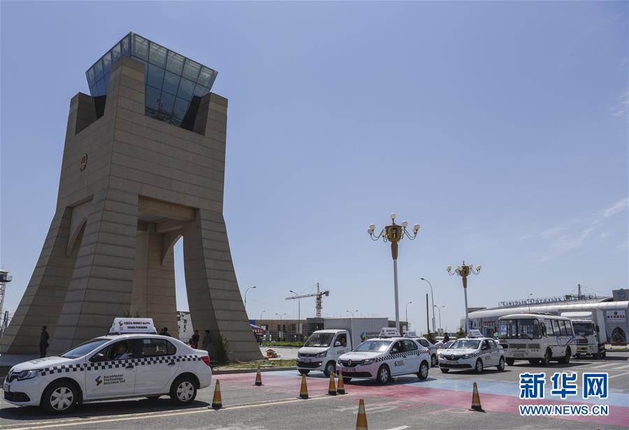 在中哈霍尔果斯国际边境合作中心,来自哈萨克斯坦的汽车排队进入中方一侧(8月4日摄)。 新华社记者胡虎虎摄