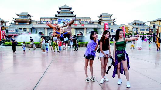 这时,园区内已经非常热闹,各种尖叫声、孩子们的玩闹声、音乐声融在一起,再加上路边随处可见的卡通形象,很有轻松欢乐的氛围。(本报记者 陈晓丽)
