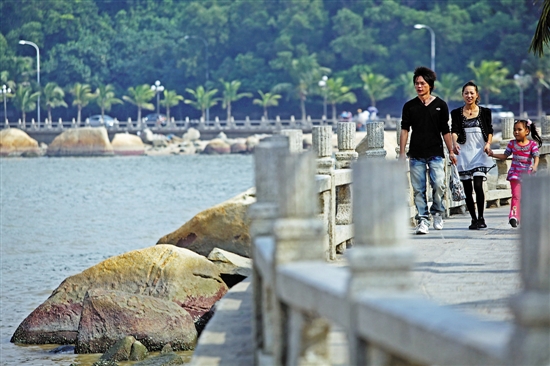 这一段其实就是珠海著名的情侣路。其中,横跨辽阔珠江口的港珠澳大桥,沟通香港澳门、珠海三地,是一项世人瞩目的超级工程,科技含量极高。而海滨泳场、城市客厅、珠海渔女雕像、海滨公园,相距甚近,这也是珠海这座滨海城市最具代表性的景观。