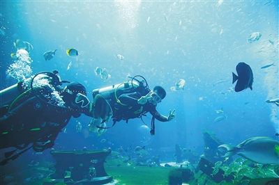 “我们相信,客人之所以愿意分享,是基于产品本身的魔力。不管是‘海神之跃’还是‘失落的空间水族馆’,之所以能够成为‘网红打卡地’,在于其独特性和趣味性。‘海神之跃’位于水世界的海神塔上,是由加拿大宝澜公司设计的顶级趣味滑道;‘失落的空间水族馆’,为宾客呈现五彩斑斓的海底世界的同时,普及海洋知识。”市场公关部副总裁孙洁告诉海南日报记者,水世界内的如“海神之跃”“放手一搏”等项目在社交媒体上的频繁出现,入园游玩的客人也乐于在微信、抖音分享他们的精彩体验,吸引更多游客专程前往“打卡”体验。