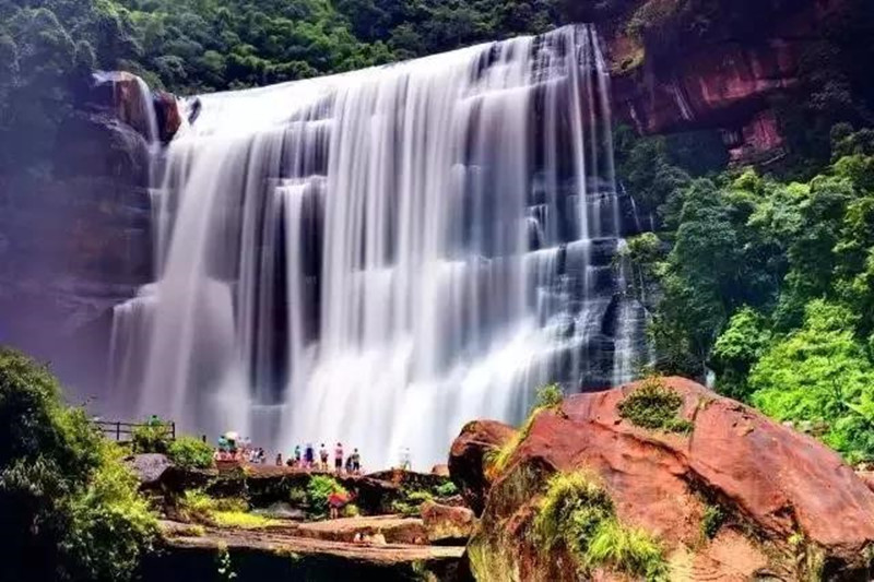 这是一处以竹海风光、瀑布群、原始森林、野生动物和丹霞奇观综合构成的秀美景段,是避暑休闲、度假、疗养的理想胜地。