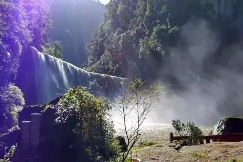 被竹林环绕的赤水大瀑布,在几里之外就会听到如雷鸣般的落水声。数百米内水雾弥漫,阳光照射之下,呈现五彩缤纷的彩虹,偶尔还能看到奇妙的“佛光环”。瀑布周围树木繁茂,四季葱茏。