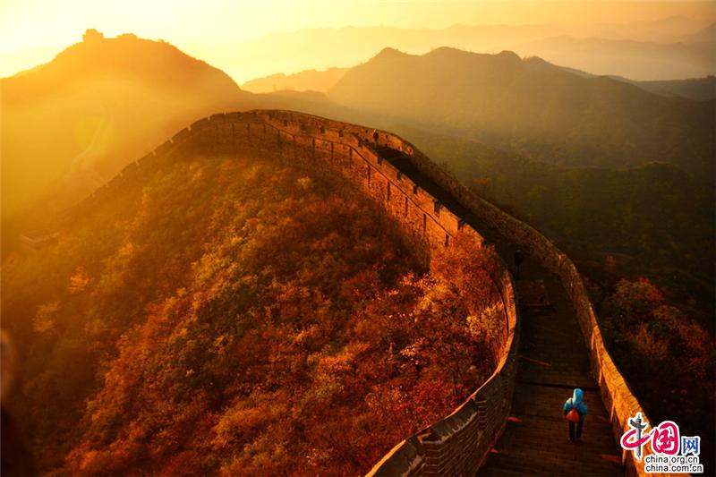 【点睛】金秋时节若想登高望远,理想地方莫过于长城。金山岭长城层峦迭障,草木茂盛,风光旖旎。古长城内外,各种树叶色彩逐渐变浓,从浅黄、金黄再到深红和鲜红,具有非常明显的层次感,宛如一幅幅五彩斑斓的瑰丽画卷。