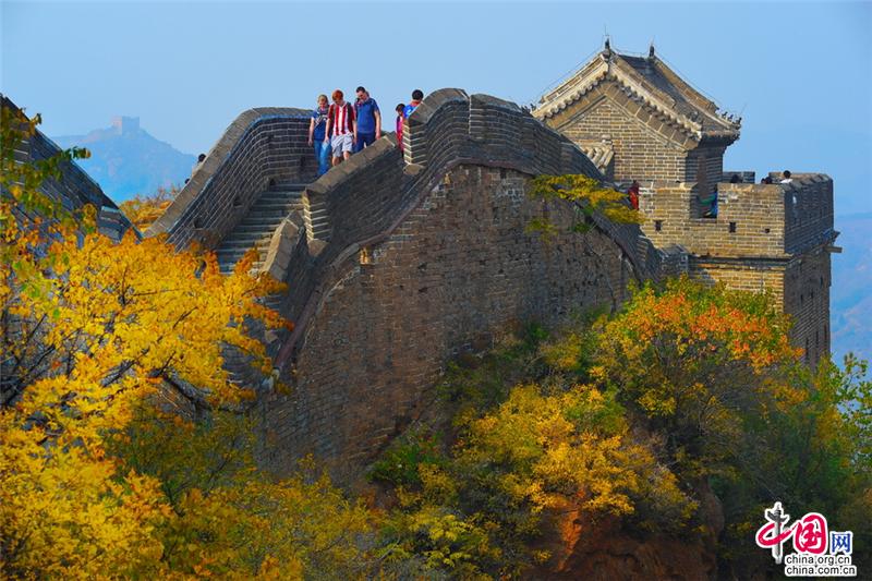 金山岭长城依山凭险,起伏跌宕于山水之间,形势雄奇壮美。