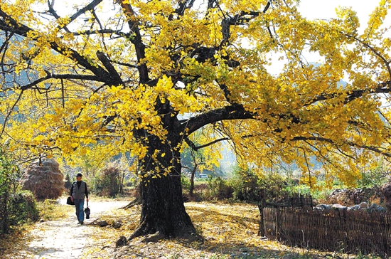 海洋乡被银杏装扮成的金色乡村 新华社记者 陈瑞华 摄