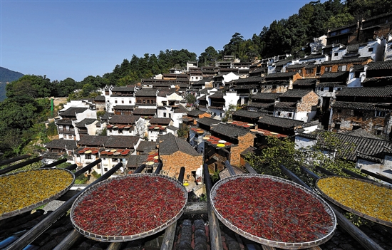 除了赏枫,篁岭古村,每年的晒秋,也是别有一番风景。