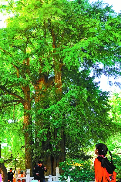 已有1400年历史的帝王银杏无疑是潭柘寺的明星古树,由于这里特殊小气候的影响,寺内两棵千年银杏树叶黄时间都相对较晚。
