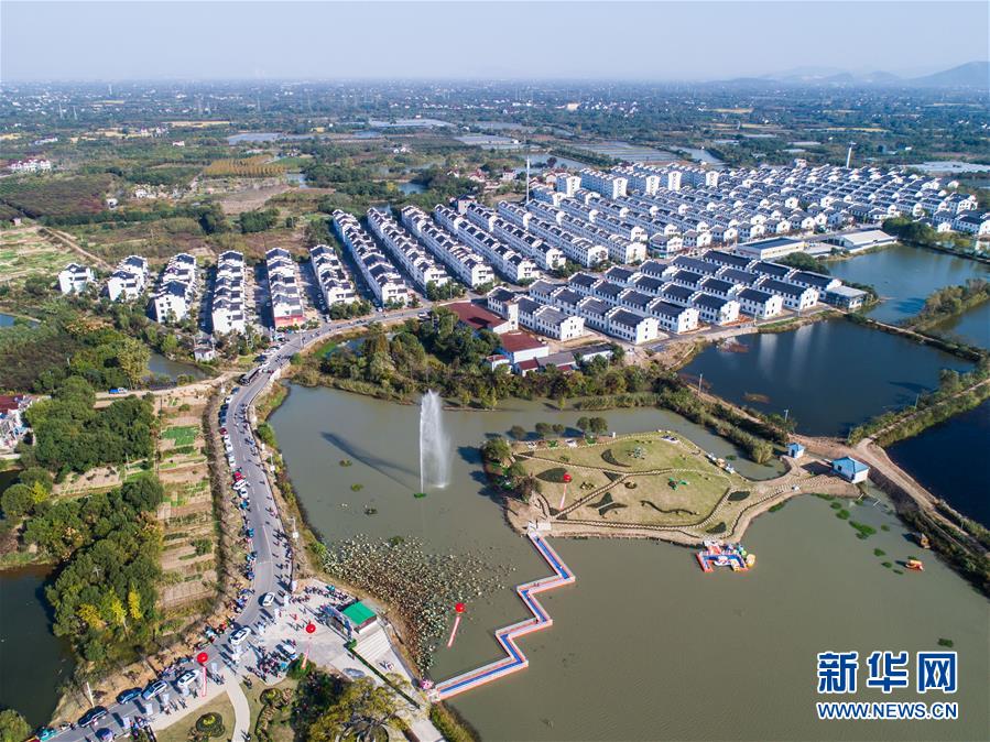 这是2018年10月27日航拍的北汤村生态园和整齐的农民新居。新华社记者 徐昱 摄