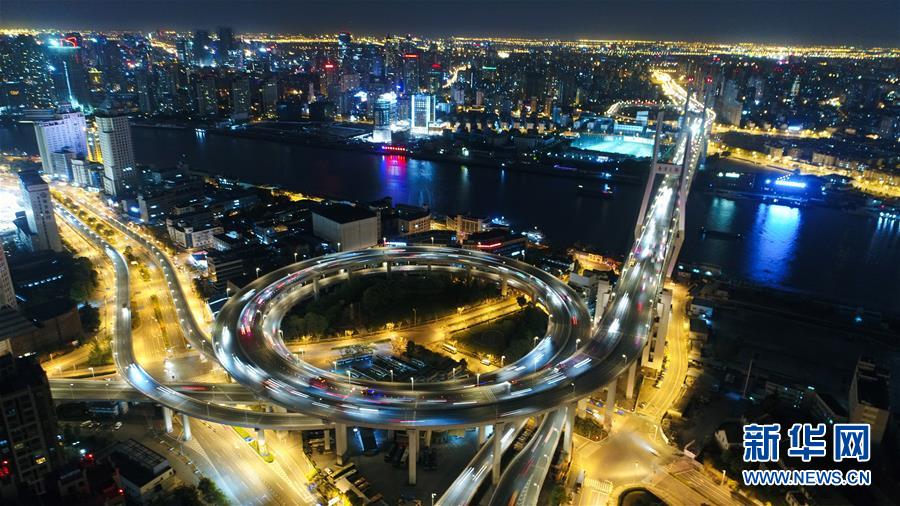 这是上海南浦大桥夜景(2017年4月13日无人机拍摄)。 11月5日,首届中国国际进口博览会将在上海拉开帷幕。作为全球首个以进口为主题的博览会,中国国际进口博览会为全球瞩目和期待。 党的诞生地“中共一大会址纪念馆”、具有自主知识产权的“国产大飞机C919”、 全球最大的自动化集装箱码头“上海洋山深水港四期自动化集装箱码头”、亚洲最大自航绞吸挖泥船“天鲲号”等都在上海这座城市孕育。 目前,上海已进入“进博时间”,这座东方魅力之都以其大美拥抱中国国际进口博览会,喜迎八方宾朋。 新华社记者丁汀摄