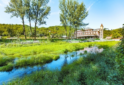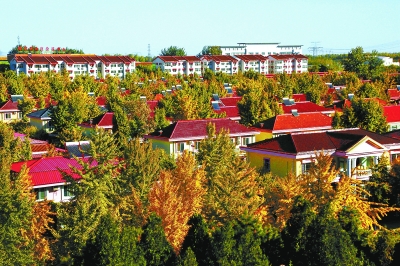 如今韩村河在确保主业基础上积极谋划转型发展,打出一手集现代农业观光、工业基地考察、爱国科普教育等功能于一体的新牌。建起了生态观光园,修复了古寺庙,还有自成一景的别墅群,吸引不少市民来此观光游览。上面这景致就是在村里拍的。 何嵘 孙玉芬 摄