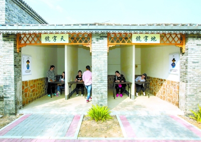 村里民俗体验园除传统农活项目,还搭起科举体验考棚,真全乎。