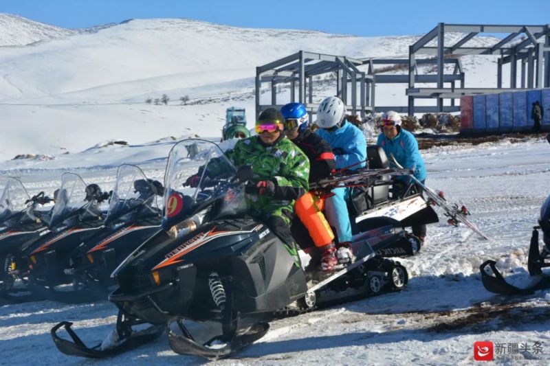 滑雪爱好者骑雪地摩托准备出发。图/赵紫璇