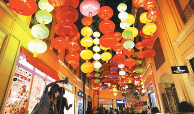 图为彩色灯笼装扮香港利东街夜景。现代与传统,高大上与平民风情,毫不违和地共生于同一片天空下。