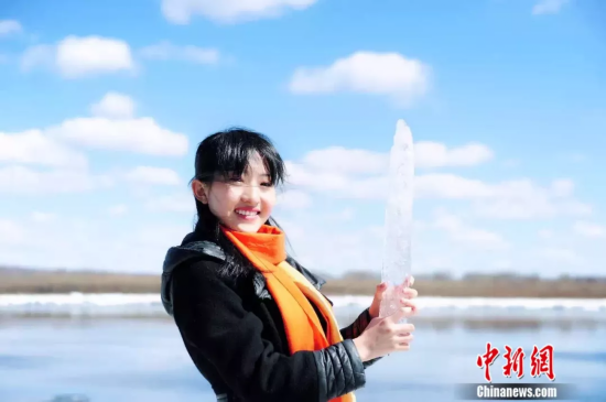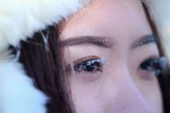 姑娘的睫毛结上白色冰花(张澍/摄)