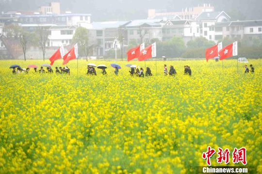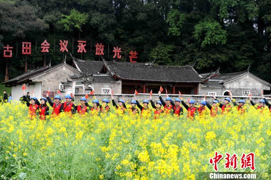古田旅游区特举办油菜花季系列活动,充分挖掘红色古田旅游和文化资源,创新乡村旅游、红色文化旅游的模式,吸引游客走进革命老区,“传承红色基因,不忘初心使命”。张金川 摄