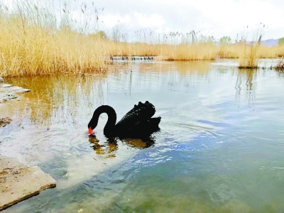 黑天鹅“驾临”莲石湖,并非偶然。这些日子,永定河跨流域生态补水工程正在进行。随着上游官厅水库开闸放水,流经门头沟的100多公里永定河,一度干涸的山峡段河道得到充沛水量的补给,再现滔滔河水奔流不息的壮阔景象。而位于城区平原段的莲石湖,水面也更加宽广,再加上还有芦苇丛等天然水生植物,黑天鹅选择这里栖息,非常适宜。