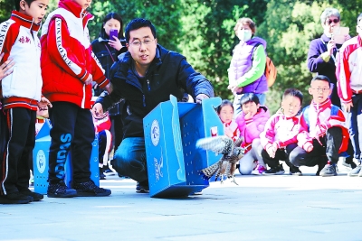 今天(3月31日)上午,市公园管理中心生物多样性保护科普宣传月暨爱鸟周系列活动在天坛公园启动。北京动物园等7家市属公园及北京市野生动物救护中心开展科普活动,游客边感受“春色如许”,边参与公园生物多样性保护的现场活动。本报记者 程功摄
