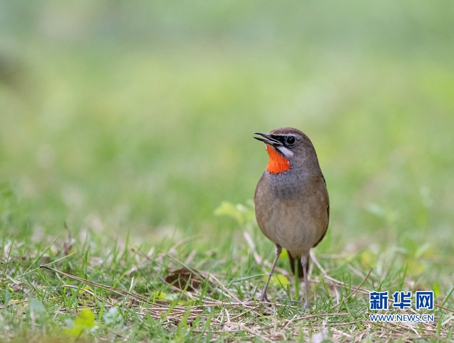 这是4月2日在福建省福州市闽侯县拍摄的红喉歌鸲。新华社记者 梅永存 摄