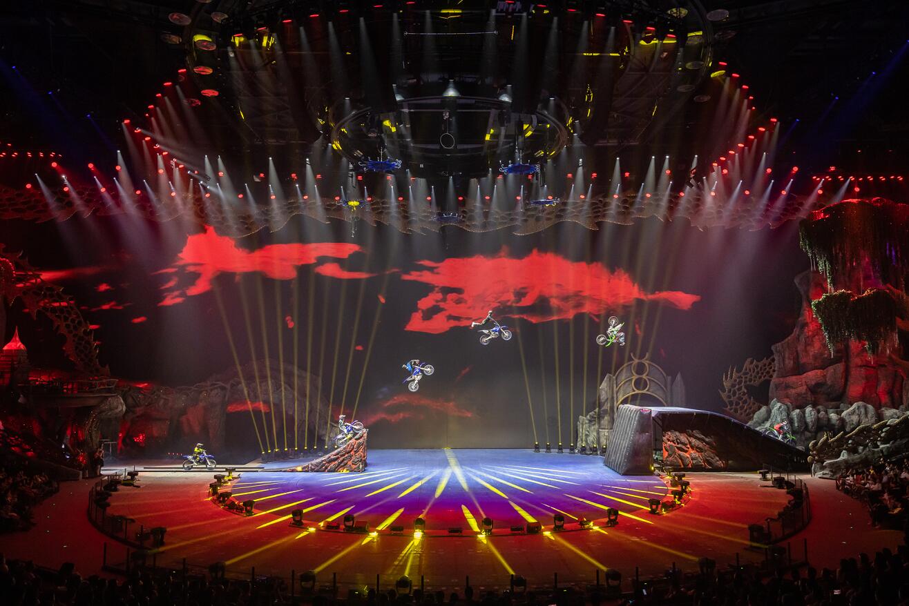 据长隆剧院《龙秀》执行导演李西宁介绍,为了呈现出长隆原创巨制《龙秀》的魔幻、恢弘场景,更好地诠释出“中国龙”的奋勇精神,长隆剧院创新性地融合了“水陆空”的设计概念:270°全景式环形舞台和3大环绕水道、超过250米长的360°高空吊挂环形轨道,以及在观众区域有一条超过5米宽的巡游通道,加入空中升降设施、空中飞行轨道及隐藏式飞行器等大型演艺设备,多达41部的巡游花车在观众眼前、身边、甚至头顶出现,超过1000只各种飞鸟在半空飞翔,以及水上花船、双层水帘、水幕投影、升降喷泉等水陆空效果随不同节目灵活变换,带来“上天入地下水”的不同演出效果。