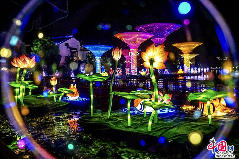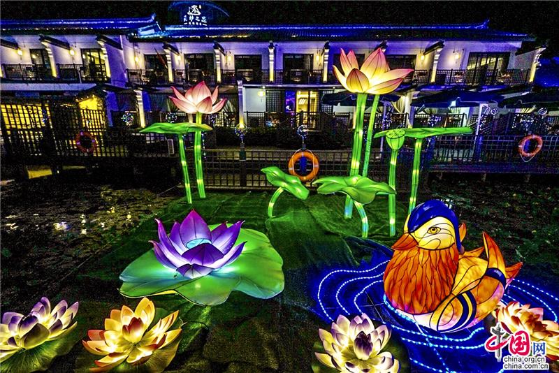 花开并蒂灯映两岸 华灯璀璨绽放周庄古镇