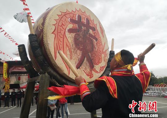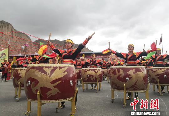 中新网甘肃景泰9月13日电 (记者 刘玉桃)雄厚的黄河战鼓声响彻峡谷,气势磅礴、场面恢宏,吸引五湖四海的游客驻足观看,感受战鼓的魅力。“第三届黄河风情文化旅游节”12日在甘肃白银市景泰县黄河石林举行。