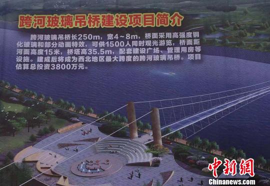为了打破景区发展瓶颈,拓展发展空间,景泰县启动了黄河石林跨河玻璃吊桥建设项目,将游乐项目在坝滩片区布局发展,形成“吃、住、行、游、购、娱”于一体的旅游产业链,让游客获得更多的体验和享受。黄河石林跨河玻璃吊桥设计为单跨人行悬索桥,桥面距河面高度15米,按五级通航标准设计;桥面采用高强度钢化玻璃和部分动画特效,可供1500人同时观光游览,建成后将成为西北地区最大跨度的跨河玻璃吊桥。