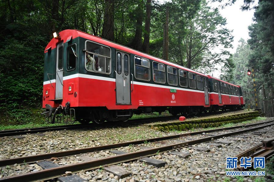 10月7日,一列小火车行驶在阿里山林区。新华社记者 陈斌 摄