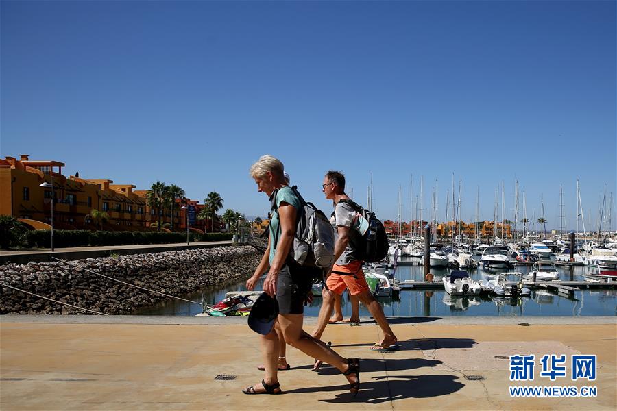 7月29日,游客走过葡萄牙南部阿尔加维地区的一处游船码头。 目前正值夏季旅游旺季,在新冠疫情的影响下,葡萄牙的旅游业受到严重的冲击。 新华社发(佩德罗·菲乌萨摄)