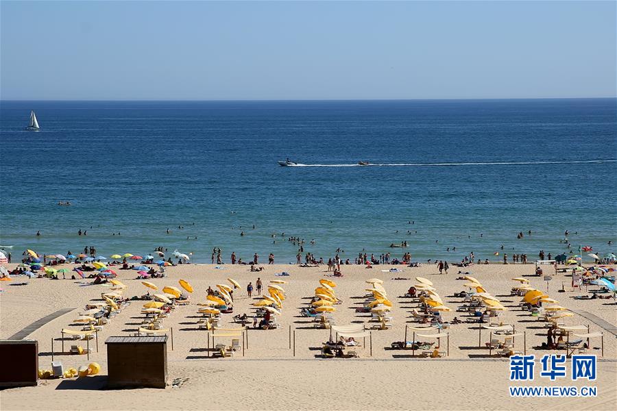 7月29日,游客在葡萄牙南部阿尔加维地区的海边休闲游乐。 目前正值夏季旅游旺季,在新冠疫情的影响下,葡萄牙的旅游业受到严重的冲击。 新华社发(佩德罗·菲乌萨摄)
