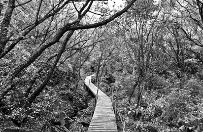 有“驴友”分享说,聚灵峡不止一条上山线路,以聚灵峡为起点上山的线路美景无数,蜿蜒小路穿梭在密林中,很长的木栈道直插云海。另一条沿着废弃缆车的路也能上山,有人评价说一路风景有如Windows桌面,会是另一种趣味。