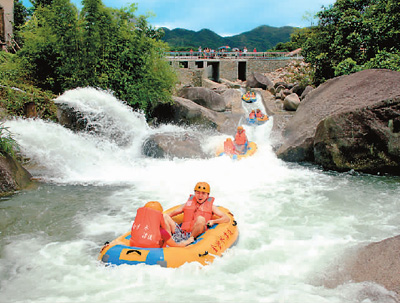 广西防城港的金沙水旅游度假区集漂流运动、水上乐园、温泉养生、酒店度假、体育休闲、农业观光为一体。漂流区沿途峡谷纵深,河道曲折,水质清纯,环境优美。