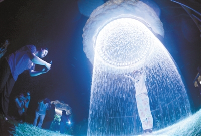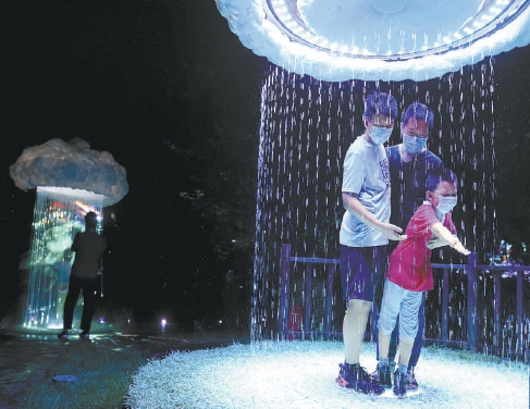 20日晚,首届北京国际光影艺术季(玉渊潭站)“万物共生”户外光影艺术沉浸式体验展在玉渊潭公园樱落花谷景区正式拉开帷幕。
