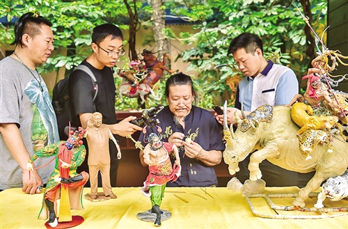 非遗传承人在展示传统的捏面人技艺。韦 旋摄