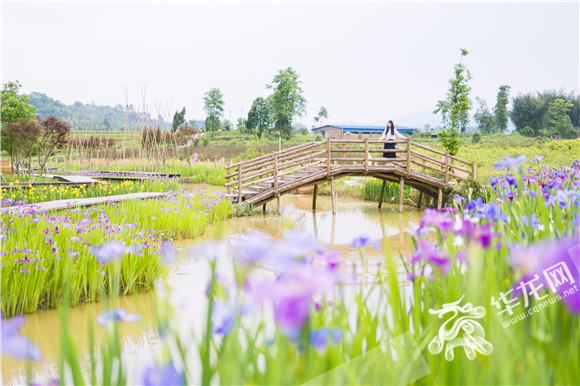 记者走进梁平双桂田园桂香天地,只见络绎不绝的游客行走在整洁宽阔的景区道路上,不时停下脚步自拍。初具雏形的紫薇园引起游客张阿姨的兴趣,她摆出了好几个造型,要老伴给她拍照留影。桂池映月旁的鸢尾花开得正好,廊桥、栈道与水相连,引得爱花的女游客们惊叹连连,桂香天地焕发出新的光彩。