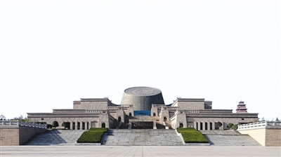 单是博物院建筑,就给人以强烈的视觉震撼。它依山而建,南依秦岭,北望渭水,采用了传统的高台门阙形式,层层递进,气势恢弘。主体建筑造型别具一格,墙面由土黄色锈石砌成,羊首浮雕和青铜纹饰装饰其上,极具历史厚重感。
