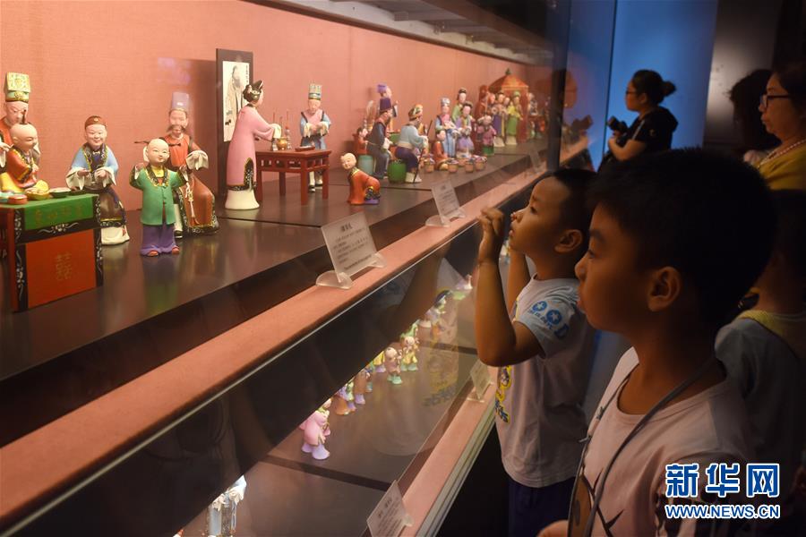 7月25日,小朋友们在广东省博物馆的广东历史文化展厅内参观。暑假期间,不少孩子来到广东省博物馆,通过参观文物,学习广东地方历史、民俗文化,丰富暑期生活。新华社记者 卢汉欣 摄