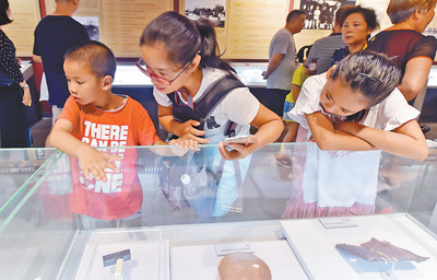 8月9日,在遵义会议纪念馆,一位家长正在向孩子讲述革命先烈的故事。