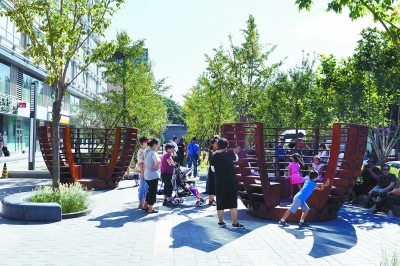 昨天,雍和宫旁新建成的2300平方米街心花园对居民开放。