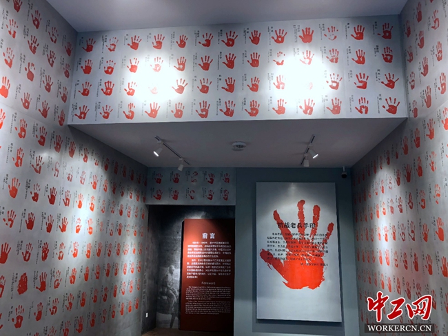 抗战文物博物馆内整齐分布的老兵手印 中工网记者 谷永光摄